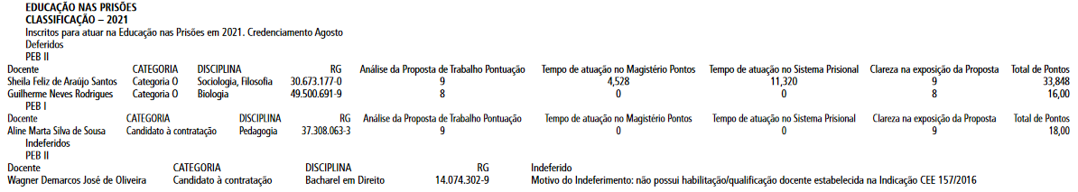 CLASSIFICAÇÃO DO CREDENCIAMENTO PRISIONAL AGOSTO 2021. 13-08-21 Enviar por e-mail Supervisão. LEIA TAMBÉM EDITAL PARA O PREENCHIMENTO DE VAGA DE PROFESSOR DO CENTRO DE INOVAÇÃO DA EDUCAÇÃO BÁSICA PAULISTA (CIEBP) – UNIDADE REGIONAL DE ENSINO REGIÃO CENTRO – VINCULADO À EE PROFESSORA ZULEIKA DE BARROS MARTINS FERREIRA. EDITAL PROFESSOR DO PROJETO DE APOIO AO PROTAGONISMO ESTUDANTIL. EDITAL 01/2026 – PROCESSO SELETIVO PARA ATRIBUIÇÃO DE AULAS DE PROFESSOR ORIENTADOR DE CONVIVÊNCIA – POC – UNIDADE REGIONAL DE ENSINO CENTRO. EDITAL SALA DE LEITURA, DE 29 DE JANEIRO DE 2026