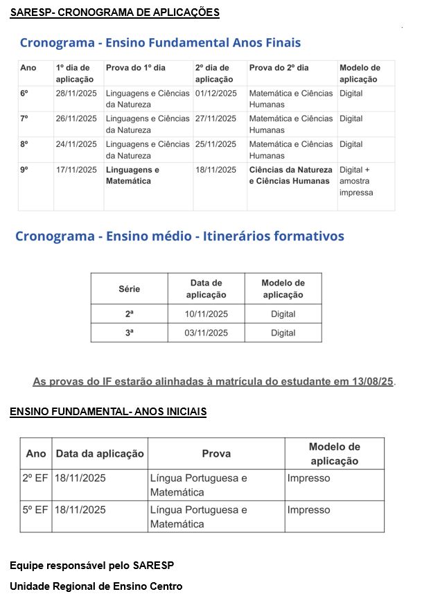- Resolução SEDUC nº 109, de 29 julho de 2025, que dispõe sobre a aplicação do Sistema de Avaliação do rendimento Escolar do Estado de São Paulo e do Provão Paulista Seriado em 2025.