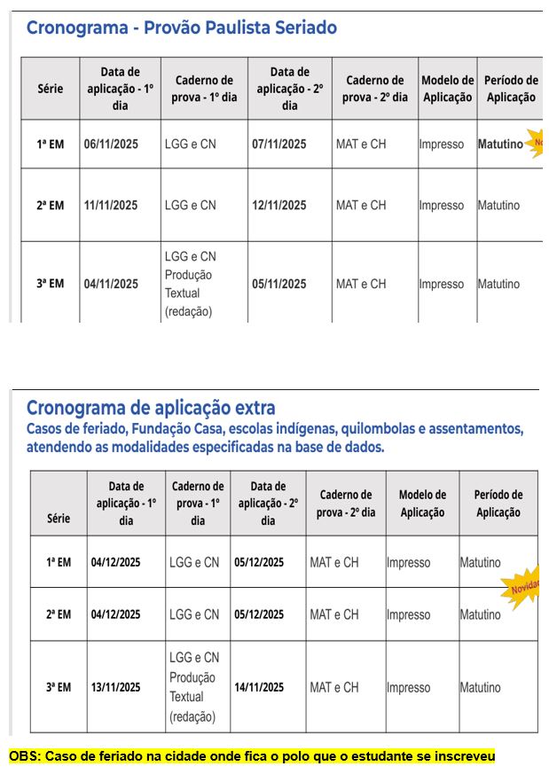 - EDITAL N° 004/2025 – Inscrições para o Provão Paulista Seriado 1ª, 2ª e 3ª séries do Ensino Médio.