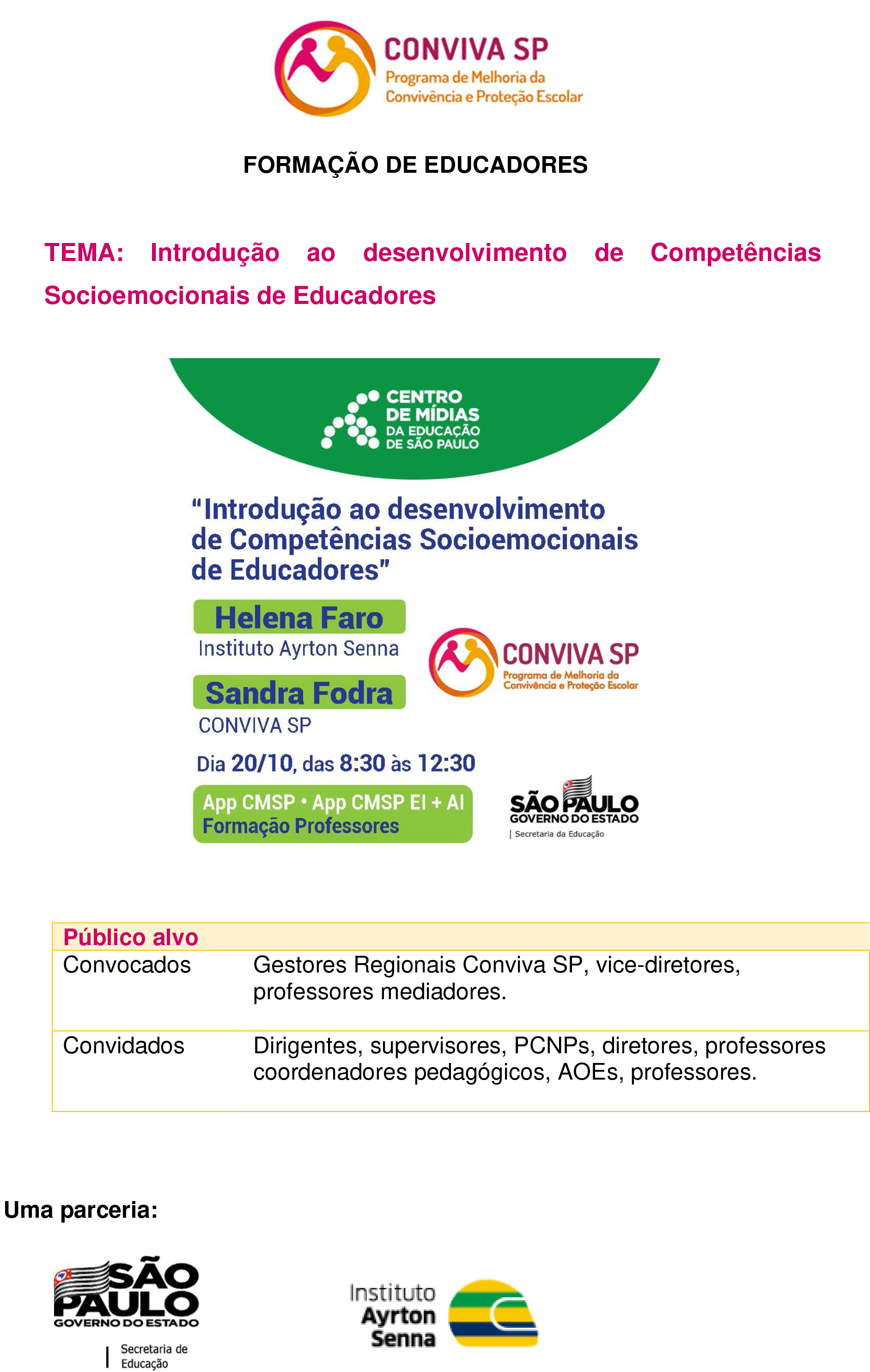 FORMAÇÃO DE EDUCADORES – CONVIVA SP 14-10-204 de dezembro de 2020 Enviar por e-mail LEIA TAMBÉM EDITAL PARA O PREENCHIMENTO DE VAGA DE PROFESSOR DO CENTRO DE INOVAÇÃO DA EDUCAÇÃO BÁSICA PAULISTA (CIEBP) – UNIDADE REGIONAL DE ENSINO REGIÃO CENTRO – VINCULADO À EE PROFESSORA ZULEIKA DE BARROS MARTINS FERREIRA. EDITAL PROFESSOR DO PROJETO DE APOIO AO PROTAGONISMO ESTUDANTIL. EDITAL 01/2026 – PROCESSO SELETIVO PARA ATRIBUIÇÃO DE AULAS DE PROFESSOR ORIENTADOR DE CONVIVÊNCIA – POC – UNIDADE REGIONAL DE ENSINO CENTRO. EDITAL SALA DE LEITURA, DE 29 DE JANEIRO DE 2026