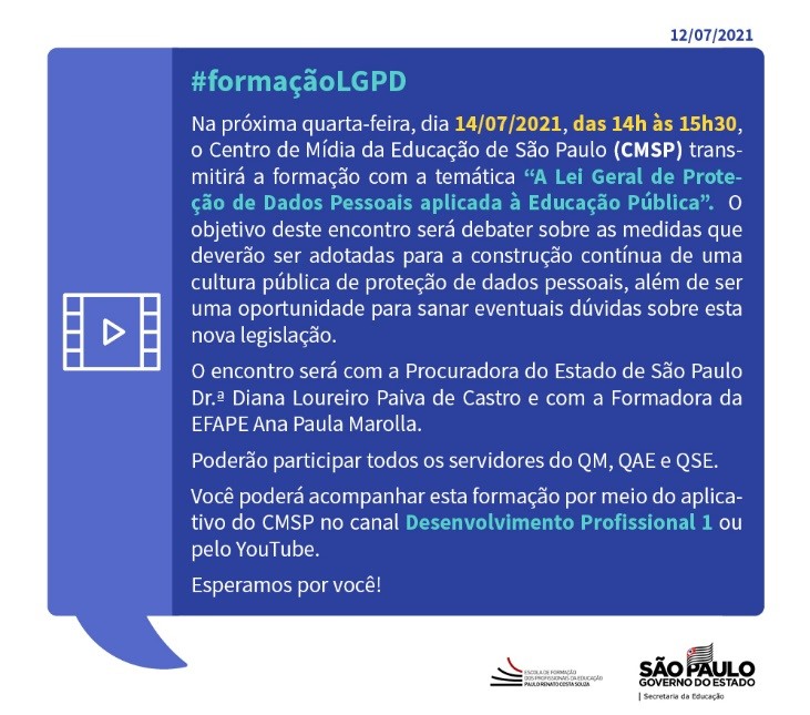 FORMAÇÃO LGPD 13-07-21 Enviar por e-mail LEIA TAMBÉM EDITAL DE ENTREVISTAS PARA PROFESSOR – REALOCAÇÃO. CLASSIFICAÇÃO FINAL CEL DEZEMBRO 2025 CREDENCIAMENTO CEL MAURO DE OLIVEIRA. CLASSIFICAÇÃO FINAL CEL DEZEMBRO 2025 CREDENCIAMENTO CEL BUENOS AIRES. EDITAL 30 / 2025 – EE JOAQUIM LEME DO PRADO – RELAÇÃO DE CANDIDATOS QUE TIVERAM SUA INSCRIÇÃO DEFERIDA OU INDEFERIDA.