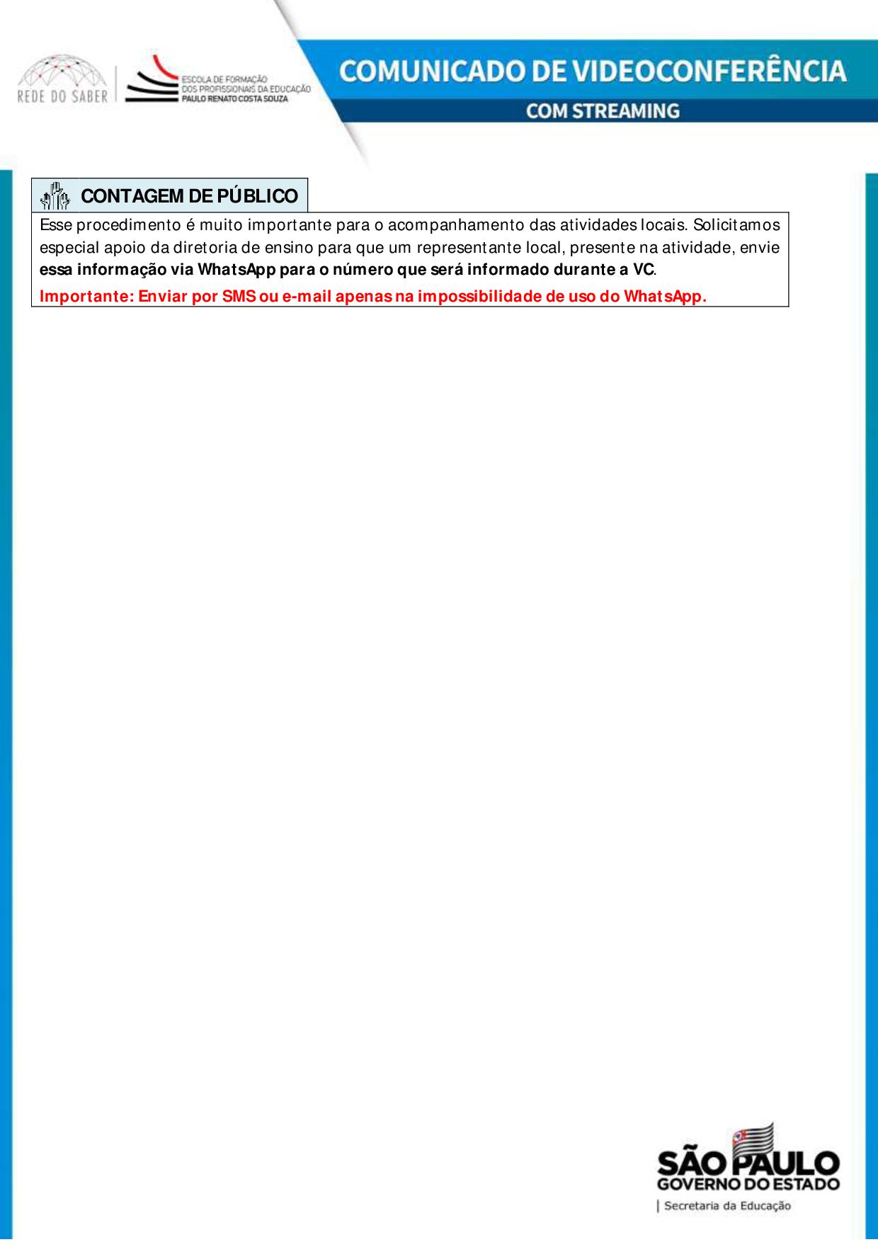 SENHORES DIRETORES – COMUNICADO DA VIDEOCONFERÊNCIA – SARESP 2019. 04-11-195 de novembro de 2019 Enviar por e-mail LEIA TAMBÉM PROCESSO SELETIVO SIMPLIFICADO PARA AFASTAMENTO JUNTO À ASSISTENCIA TÉCNICA URE CENTRO. DEFERIMENTO DAS INSCRIÇÕES PARA DESIGNAÇÃO DE DIRETOR DE ESCOLA NOS TERMOS DA RESOLUÇÃO 41/2023 – EDITAL 04/2026 (EE GONÇALVES DIAS) EDITAIS DE ABERTURA DE INSCRIÇÕES PARA AGENTE DE ORGANIZAÇÃO ESCOLAR – FEV. 2026. EDITAL 02/2026 DOS DOCENTES DEFERIDOS/ INDEFERIDOS DO PROCESSO SELETIVO INICIAL SIMPLIFICADO PARA ATUAR NO CURSO DE PRESENÇA FLEXÍVEL.