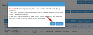 o As aulas associadas incorretamente, deverão ser excluídas e informadas novamente, conforme exemplo: