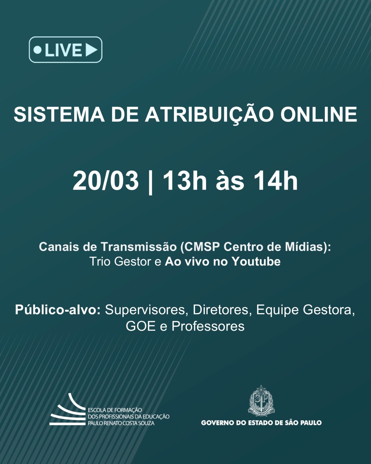 SISTEMA DE ATRIBUIÇÃO ONLINE. 19-03-26 Enviar por e-mail LEIA TAMBÉM EDITAL VAGA DE COORDENAÇÃO DE GESTÃO PEDAGÓGICA – ANOS INICIAIS – EF – EE PAULO SETÚBAL , DE 18 DE MARÇO DE 2026. CLASSIFICAÇÃO PARCIAL CREDENCIAMENTO CEL BUENOS AIRES – MARÇO/2026. RESULTADO DA ANÁLISE PRELIMINAR DA QUALIFICAÇÃO REFERENTE AO EDITAL 03/2026 – PROCESSO SELETIVO PARA ATRIBUIÇÃO DE AULAS DE PROFESSOR ORIENTADOR DE CONVIVÊNCIA (POC). CONVOCAÇÃO PARA CADASTRO EMERGENCIAL E ENTREVISTA PROJETO PROFESSOR TUTOR – ANOS FINAIS.
